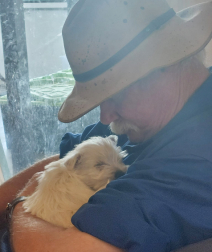 We picked up Shaun from Brandywine many years ago, and he is still thriving. He’s been the most precious addition to our family. His calm yet playful nature endears him to every family member, and those outside the family adore his gentleness. He loves nothing more than being around people, watching TV, travelling, going for a bush walk, playing dress-up, and interacting with all types of other animals. He gets along with everyone, so much so that he has become a part time therapy dog at the school where I work.
