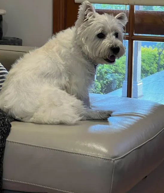 We picked up our bundle of fluff in 2016. Now nine years old, she has been a delight, full of all the Westie things. She loves a cuddle and a tummy rub, is a very active little dog, and is very social.