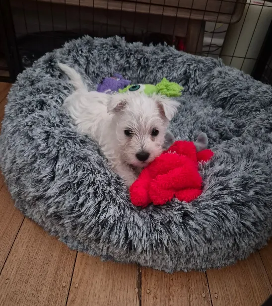 Julie was wonderful to deal with — so helpful, kind, and clearly passionate about her Westies. We felt supported throughout the whole process and know Theo got the best start in life thanks to her care.